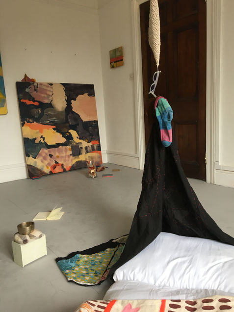 09/05/2018 Today after talking with Unn and Emma, and also the change of the setting up in our space, I found the shadow HARUKA is now welcomed because the objects in the space suddenly start interacting each other. I found every object has their souls which can represent ‘SHADOW’ of them. So I started to think of standing outside of the window and looking at the audience in the space wearing a black bed sheet and also the black sunglasses. The black sunglasses would connect to the video on the duvet. (In the end of the video, there is a scene of looking into the black sunglasses). I started to think of using rice to make sounds on the window, because there is a sound of rice in the sound I made. And when audience find me, I immediately escape to the garden or, hiding under the window, or counting rice to focus on my solidarity.